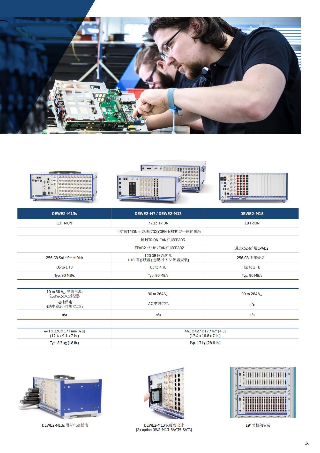 | DEWE2-M13s |  | 104 | 13 x TRION | 8 x 外部 | AC | DC | Opt. | 441 x 230 x 177 mm (4 u)